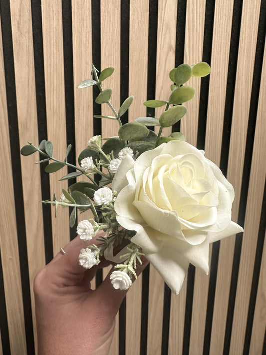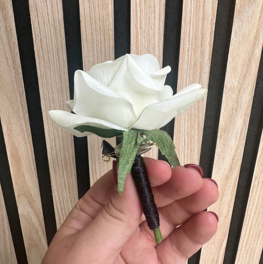 All of our wedding buttonholes and corsages feature a secure safety pin backing, making them quick and easy to attach on the big day. Designed for convenience and style, ideal for weddings. Adult supervision is required when worn by children.